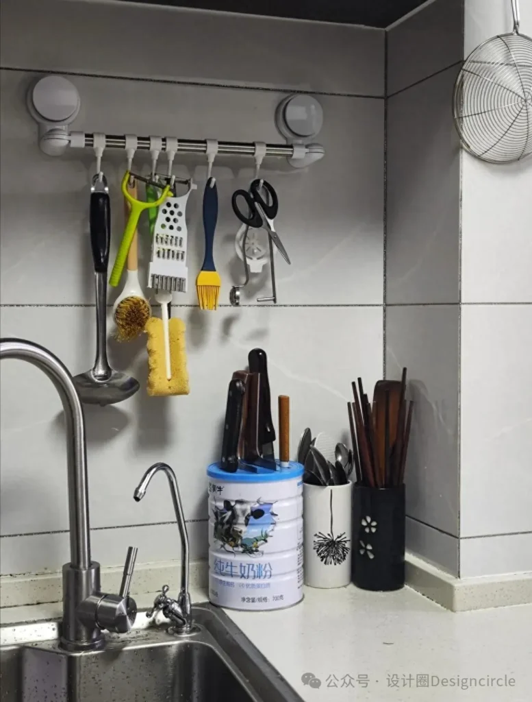 Have you ever thrown away the red baskets directly after eating strawberries? My family used to do the same until my mother discovered their wonderful uses. She strung several red baskets together with red ropes to make a simple storage basket. Now, this storage basket holds kitchen items such as garlic, ginger, and potatoes. It not only makes full use of the kitchen wall space but also makes the kitchen look neater and more organized. It seems that “waste” in life, as long as we discover and utilize it with heart, can become a great helper for home organization!